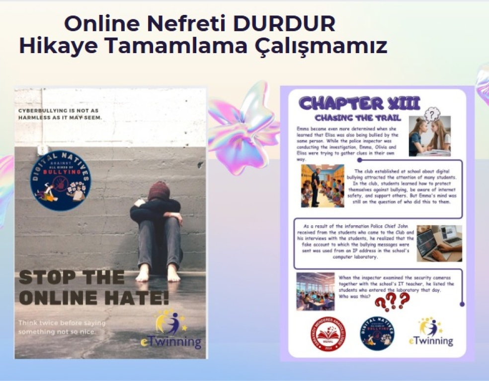 Okulumuz İngilizce öğretmeni Zehra YILMAZ tarafından yönetilen "Digital Natives Against All Kinds of Bullying" isimli eTwinning projesi etkinliklerimiz projemiz ile ilgili 9 Mayıs Avrupa Günü'nde öğrencilerimize bilgilendirme toplantısı yapılarak tamamlanmıştır.
